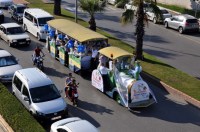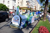 Eski Belediye Binası önünden gezi trenine bildirilen 134 çocuğa, aileleri de belediye ve kendi araçlarıyla eşlik ederek konvoy halinde şehir turu attı.