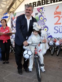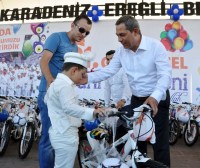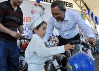 Çocuklara bisiklet ve futbol topu hediye eden Başkan Uysal, ailelerle ve çocuklarla bol bol hatıra fotoğrafı çektirdi.