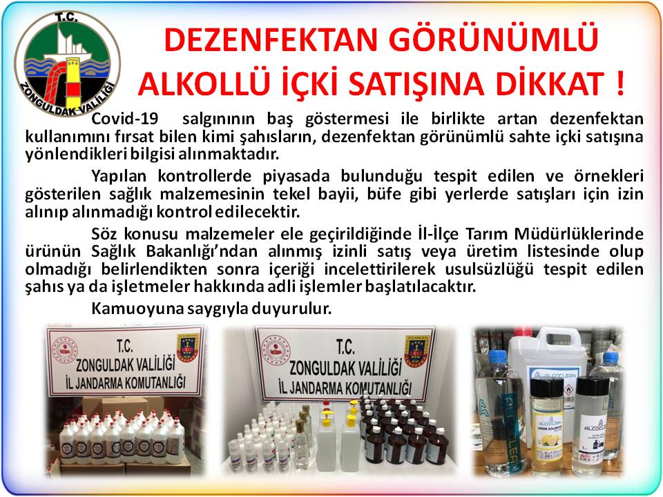 “Covid-19 salgınının baş göstermesi ile birlikte artan dezenfektan kullanımını fırsat bilen şahısların, dezenfektan görünümlü sahte içki satışına yöneldikleri bilgisi alınmaktadır.