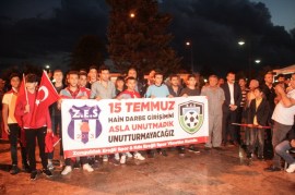 Öte yandan, 15 Temmuz Demokrasi ve Milli Birlik Günü etkinlikleri çerçevesinde, geceyarısı 00.13’te ilçedeki camilerden salalar okundu.