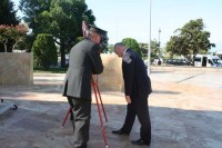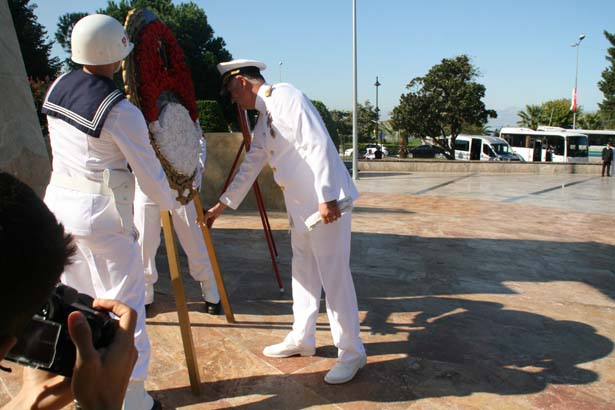 Anıtı'na çelenk sundu. Törende saygı duruşunda bulunuldu, İstiklal Marşı