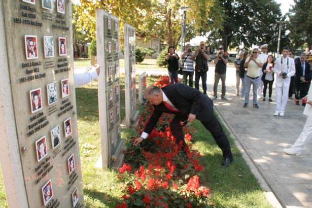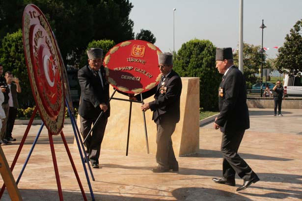 Daha sonra Atatürk Anıtı’nın arkasında bulunan Şehitler Anıtı’na geçen protokol ve gaziler, şehit fotoğraflarının bulunduğu anıta kırmızı karanfiller bıraktı.