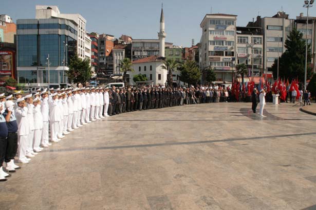 Atatürk Anıtı önünde düzenlenen programda, Karadeniz Ereğli Kaymakamı İsmail Çorumluoğlu, Karadeniz Bölge ve Garnizon Komutanı Tuğamiral Hüseyin Sami Uyar, Ereğli Belediye Başkanı Halil Posbıyık ve Muharip Gaziler Derneği Kdz Ereğli Şube Başkanı Temel Şahin, Atatürk Anıtı’na çelenk sundu.