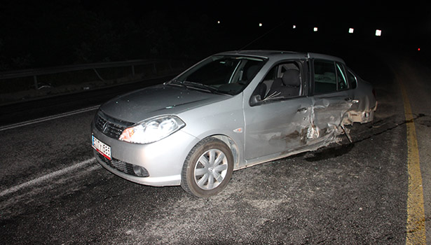 UD 826 plakalı otomobilin çarpması sonucu yoldan çıkarak bariyerlere çarptı.