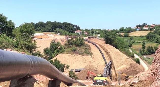 Karadeniz’de revize edilen 710 milyar metreküplük doğalgazın karaya nakli için 170 kilometrelik hatta doğalgaz boruları döşendi. Gazın işleme tesisinden ulusal şebekeye bağlanacağı 36 kilometrelik kara hattı da tamamlandı. Coğrafi zorlukların yaşandığı sahada birden fazla engelin aşılarak tamamlanan güzergahta ilk kez otomatik kaynak makinesi kullanıldı.