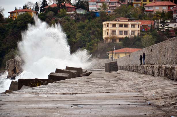 gemiler beşik gibi sallandı. 7 metrelik dev istinat duvarını aşan dalgalar,
