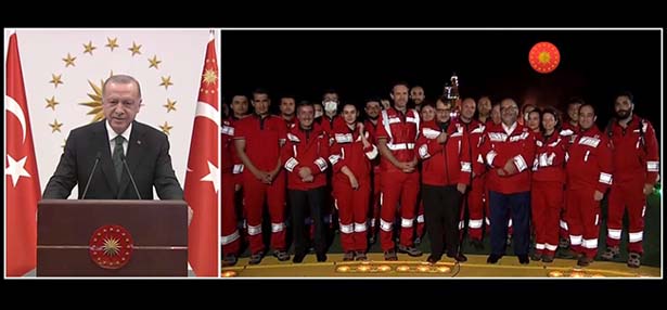“Gazın karaya çıkartılması için ekiplerimiz büyük bir gayretle çalışırken bir taraftan da sismik aramalarımız devam ediyor. Sakarya Gaz Sahası’nda 3 boyutlu 11 bin kilometre karelik sismik taramayı tamamladık. Yorumlama aşamasına geçildi. İnşallah buralardan da elde edeceğimiz veriler yeni müjdelerin de habercisi olacak. Karadeniz gazının milletimizle buluşması için gece gündüz ter döken TPAO çalışanlarımıza, bizleri dualarıyla yalnız bırakmayan aziz milletimize şükranlarımı sunuyorum. Yeni müjdelerle milletimizin huzuruna çıkmayı temenni ediyoruz.”