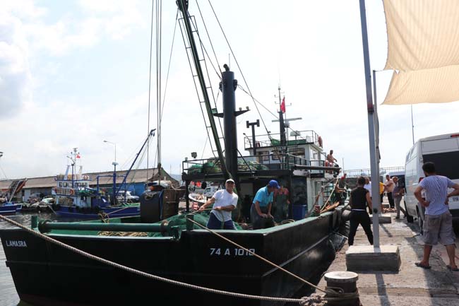 Zonguldak’ın Ereğli ilçesinde dün gece av yasağının sona ermesiyle denize açılan balıkçı tekneleri olumsuz hava koşullarına rağmen öğlen saatlerinde kasa kasa balıkla geri döndü.