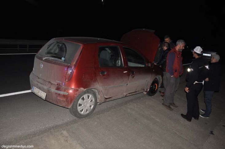 gelen taş kazaya neden oldu. Kazada otomobilin sağ ön kısmı hasar görürken,