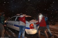 sağlamaya gelen ve yolda mahsur kalan bir trafik aracı da vatandaşların