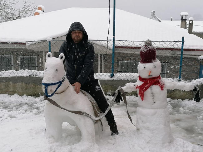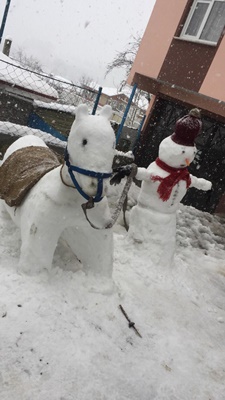 Zonguldak’ın Alaplı ilçesine bağlı Bölücek köyünde yaşayan gençler kardan adam ve kardan at yaparak hünerlerini konuşturdular.