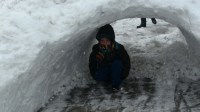 Zonguldak'ta 2 gündür devam eden kar yağışı sonrası dükkanların önü yarım metreyi aşan karla kaplandı.