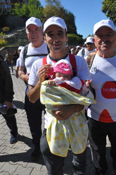 Yürüyüşe 4 buçuk aylık kızı ile katılan baba Mithat Işık, kızının bu yaşta alışmasını istediğini ve sağlıklı bir yaşam sporun şart olduğunu söyledi.