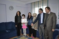 Keskin, evinde ziyaret etti. Karnesini İlçe Milli Eğitim Müdürü Çelik'ten alan