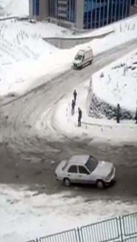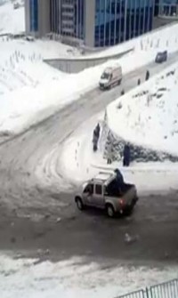 Ömerli mevkiinde oturan bir vatandaş, kar yağışı sonrasında araç sürücülerinin yaşadığı zor anları cep telefonunun kamerası ile görüntüledi. Görüntülerde araç ve ambulans sürücüsü yokuştan çıkmak için büyük çaba sarf ediyor. Belediyeye ait kamyonetteki işçi tarafından kürekle yola tuz atılıyor. Uzun süren uğraşlar sonrasında araçlar yokuştan çıkarak yoluna devam ediyor.