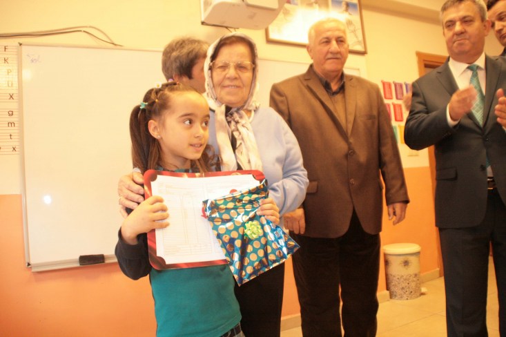 Konuşmaların ardından Kadir-Nevişet Kameroğlu İlkokulu 2 A öğrencilerine karneleri, başarı belgeleri ve hediyeleri Kaymakam Nazım Madenoğlu, Hayırsever Nevişet Kameroğlu, İlçe Milli Eğitim Müdürü Numan Korkmaz, Gençlik Hizmetleri ve Spor İlçe Müdürü Serkan Keleş, öğrenci velileri ve gazeteciler tarafından verildi.