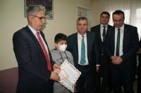 İlçe Milli Eğitim Müdürü Numan Korkmaz ve Gençlik Hizmetleri ve Spor İlçe Müdürü Serkan Keleş de Yiğit'e hediyeler takdim etti.