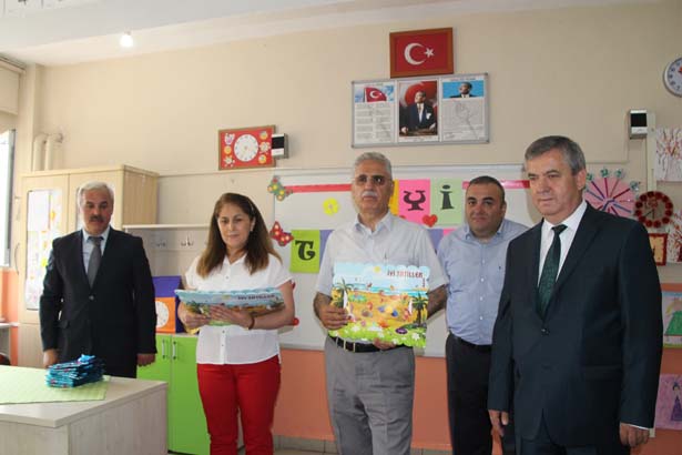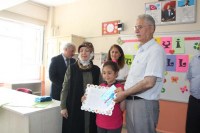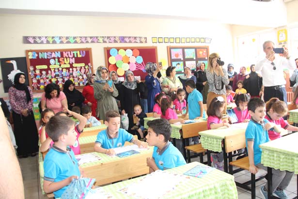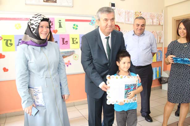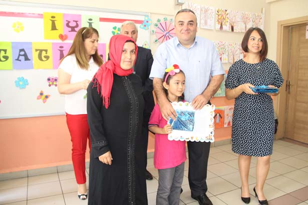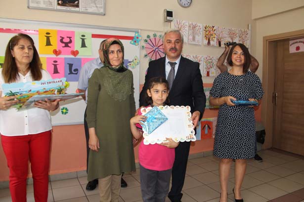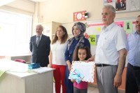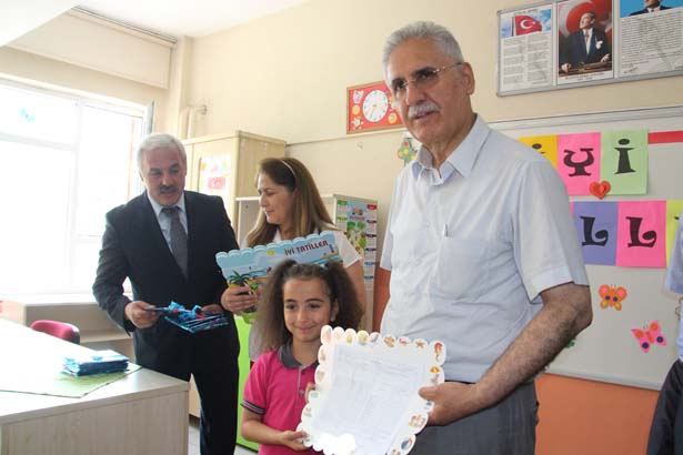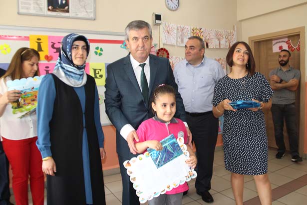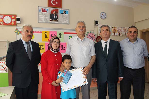 Kaymakam Madenoğlu 1/A sınıfında sınıf öğretmeni Fahriye Kalem Biricik'le beraber ilk karneyi Betül Kertlez adlı öğrenciye verirken, karnelerini alan öğrencilerin ve ailelerin mutluluk ve heyecanları gözlerinden okunuyordu.