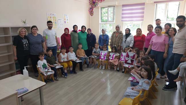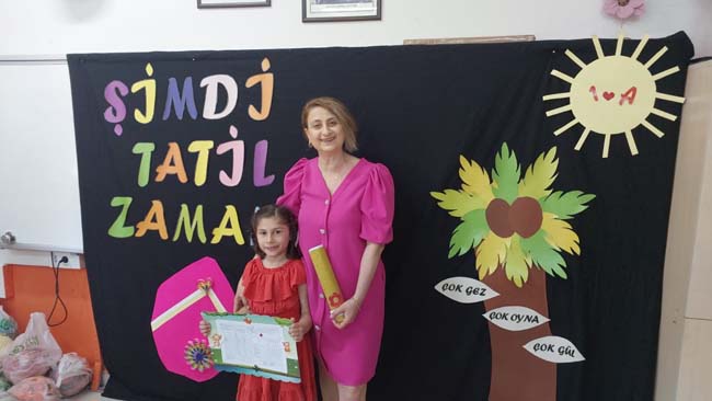 Öğrenciler de karneleriyle birlikte hatıra fotoğrafı çektirdiler.