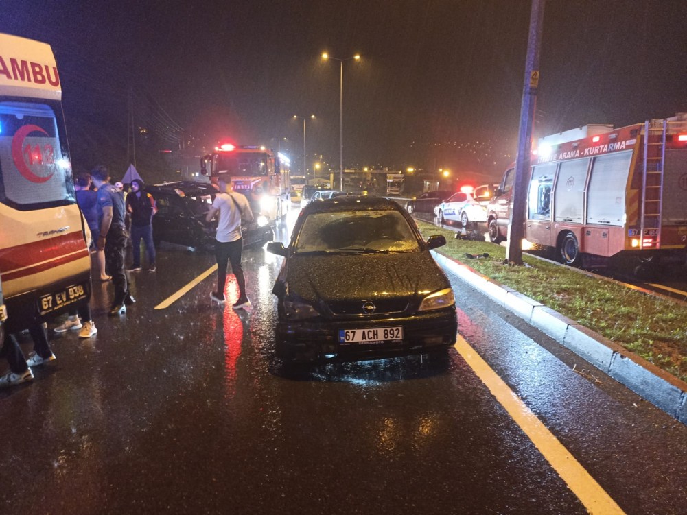 İddiaya göre sürüsünün Zonguldak istikametinden Ereğli istikametine giden Ö.A. idaresindeki 16 ADV 063 plakalı otomobil, sürücüsünün direksiyon hakimiyetini kaybetmesi karşı şeride geçerek seyir halinde ki K.C. idaresindeki 67 ACH 892 plakalı araca, ardından F.D. nin kulandığı 67 ACM 868 plakalı araca çarparak durabildi. Kazada Ö.D.ve yolcusu S.A. çarpmanın etkisi ile yaralandı. Olayı gören vatandaşlar durumu sağlık ekiplerine bildirdi. Kısa sürede olay yerine gelen ekipler ilk müdahalenin ardından yaralıları Devlet Hastanesine kaldırdı. Hastanede Ö.A. ve S.A.' nin tedavisine başlandığı hayati tehlikesinin olmadığı öğrenildi.