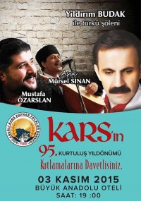 Anadolu Otel'de saat 19.00'da Kars'ın 95. Kurtuluş yıldönümü dolayısıyla gece