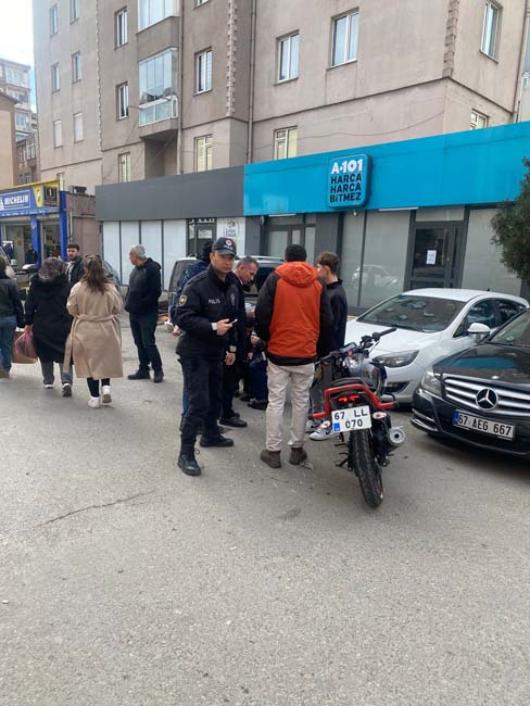 İddiaya göre, M.C. idaresindeki 67 ADY 807 plakalı motosiklet ile K.Ç. idaresindeki 67 LL 070 plakalı motosiklet kafa kafaya çarpıştı. Çarpmanın etkisi ile yaralanan ve motosiklet sürücüleri için sağlık ekiplerine haber verildi. Kısa sürede olay yerine gelen sağlık ekipleri yaralı motosiklet sürücüleri M.C. ve K.Ç.’ ye yaptıkları ilk müdahalenin ardından Devlet Hastanesine kaldırdı. Hastanede tedavi altına alınan yaralıların hayati tehlikesi olmadığı öğrenildi.