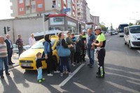 KARŞIYA GEÇMEK İSTERKEN TAKSİYE ÇARPTI