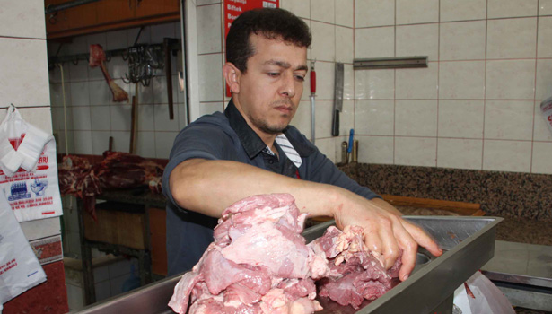 mesaisine devam ediyor. Etin kilosu 1 ile 1,5 liradan çekiliyor.