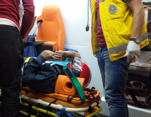 yardımı ile ambulansa taşınan motosiklet sürücüsü Erdoğan S., kendisini ölümden