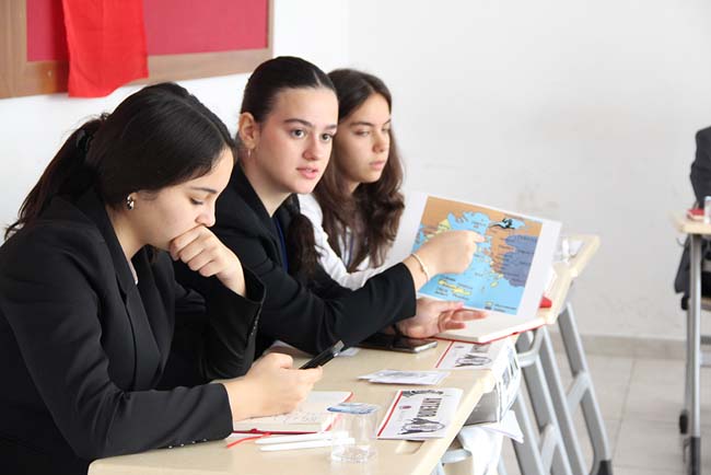 KEALMUN’24 konferansında yer alan 3 ayrı kriz komitesinde öğrenciler bölgede ilk kez güncel sorunlardan farklı olarak, tarihsel sorunlar, o dönemin karakterleri temsil edilerek yeniden tartışıldı.