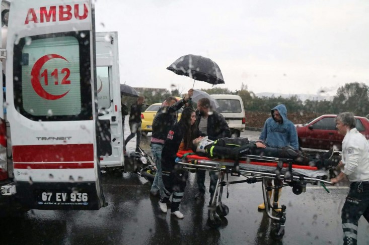 Kaza Ereğli Alaplı karayolu Gülüç Beldesi kavşağında meydana geldi. Alınan bilgilere göre Ereğli'den Alaplı istikametine giden O.S. nin (24) kullandığı 67 DB 155 plakalı motosiklet ile K.U. nun (27) kullandığı 67 T 5154 plakalı Ticari taksi ile çarpıştı. Kazada Motosiklet sürücüsü O.S. ile motosiklette yolcu olarak bulunan Z.B. (19) yaralandı. Yaralılar olay yerine gelen sağlık ekiplerinin yaptığı ilk müdahalenin ardından Ereğli Devlet hastanesine kaldırıldı. aralıların sağlık durumlarının iyi olduğu ve hayati tehlikelerinin bulunmadığı öğrenildi. Ticari taksi sürücüsü K.U. ise ifadesi alınmak üzere Gülüç polis merkezine götürüldü. Savcılık kaza ile ilgili soruşturma başlattı.