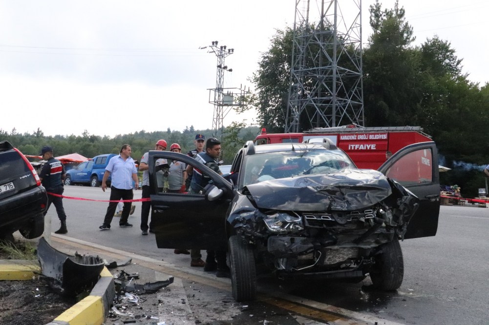 Kaza Zonguldak İstanbul karayolu Kandilli kavşağında meydana geldi. İddiaya göre Zonguldak’tan Ereğli istikametine giden İsa C. idaresindeki 67 LJ 341 plakalı cip ile Park yerinden kavşağa girmek isteyen Serap D. (42) idaresindeki 41 HG 715 plakalı araca çarptı. Kazada Kazada her iki aracın sürücüsü ile 41 HG 715 plakalı araçta bulunan Fırat (13), Ece (20), Yaren D. (23) yaralandı. Yaralıların yardımına koşan vatandaşlar sağlık ekiplerine haber verdi. Olay erinde gelen 3 ambulansa alınan yaralılar Devlet hastanesine kaldırıldı. İsmail Karadeniz isimli vatandaş ise kaza anını kameralara anlattı. Devlet hastanesine kaldırılan yaralıların sağlık durumlarının iyi olduğu ve hayati tehlikelerinin bulunmadığı öğrenildi.