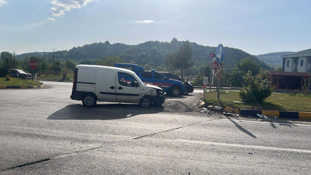 Zonguldak-Ankara karayolu Gökçebey yol ayrımında trafik kazası meydana geldi. Hafif ticari araç ile otomobilin çarpıştığı trafik kazası, güvenlik kamerasına yansıdı.