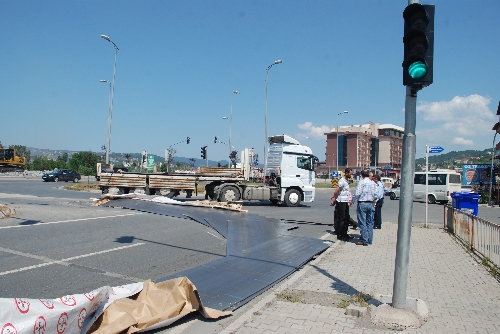 Zonguldak&8217;ın Ereğli ilçesinde, kavşaktan dönüş yapan TIR´ın yükü karayoluna dağıldı.