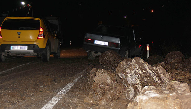 KAYA PARÇALARI KARAYOLUNA DÜŞTÜ