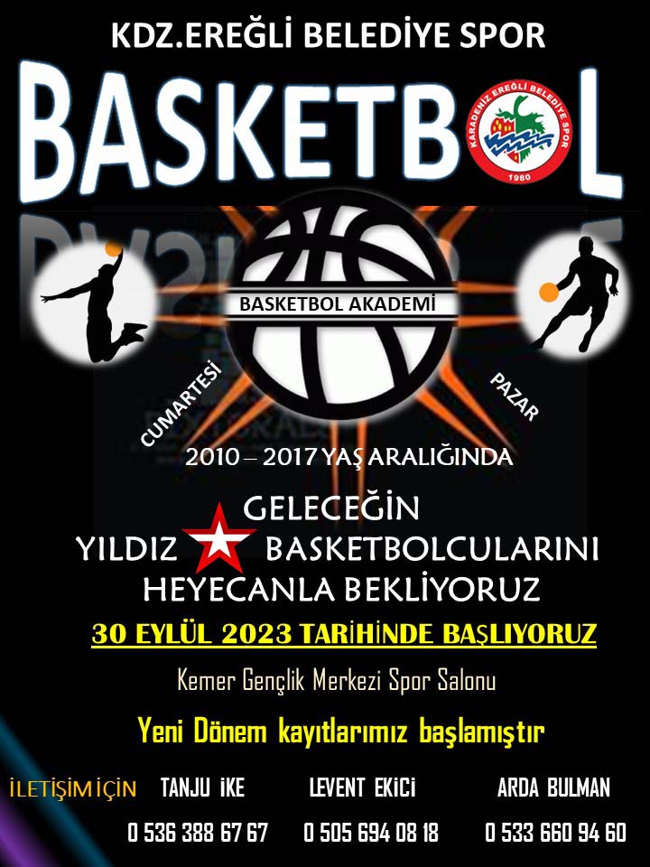 Kdz. Ereğli Belediyespor Kulübü tarafından; 2019 yılından beri faaliyetlerine başarı ile devam eden ve gençlerimizi spor kültürüyle buluşturan Basketbol Spor Okulu 2023-2024 sezonu açılışını 30 Eylül 2023 Cumartesi gerçekleştirecek.