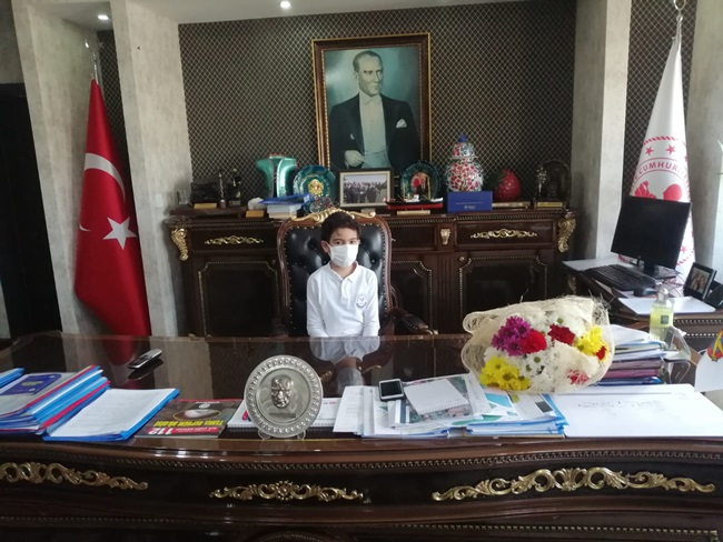 Kaymakam Çorumluoğlu koltuğunu, 2. sınıf öğrencisi Mahmut Yiğit Genç' e devretti