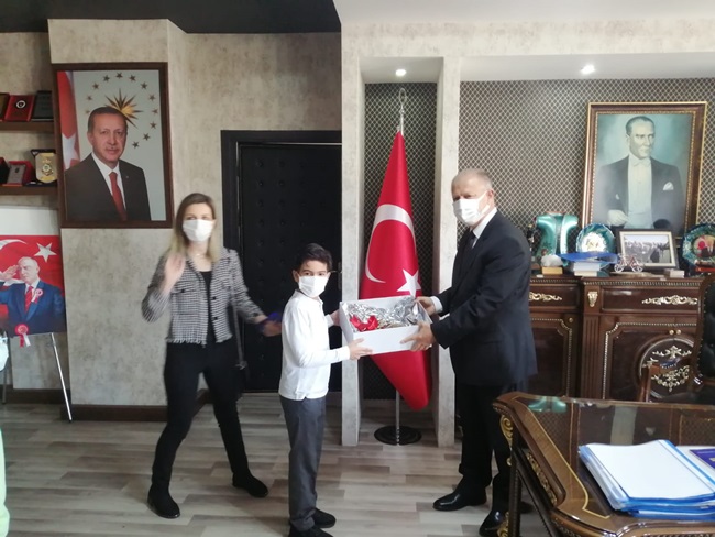 Alınan bilgiye göre, 26 Nisan Pazartesi günü gerçekleştirilen ziyarette Okul Müdürü Cem Akbaş ve öğretmeni Sevda Mert ile birlikte geldi.