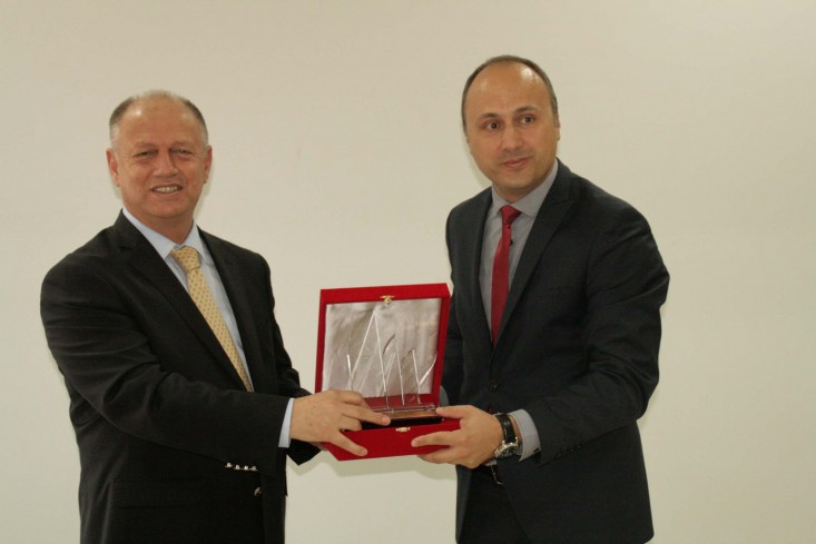 Çorumluoğlu'na plaket ve çeşitli hediyeler takdim etti.