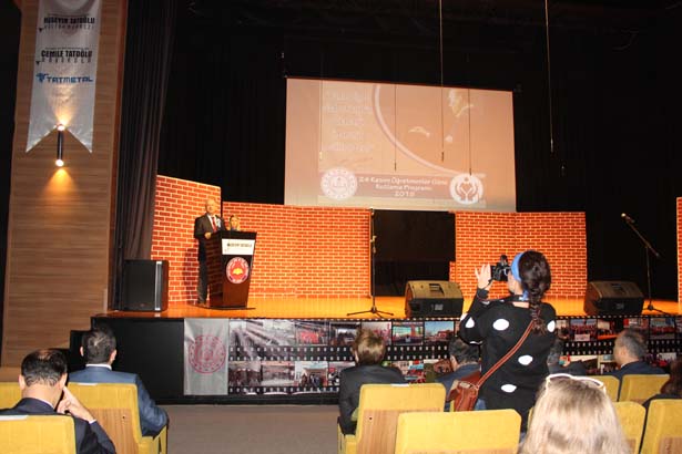 Aksoy’un konuşmasının ardından Milli Eğitim Bakanı Prof.Dr. Ziya Selçuk’un 24 Kasım Öğretmenler Günü mesajı sinevizyon eşliğinde okundu.