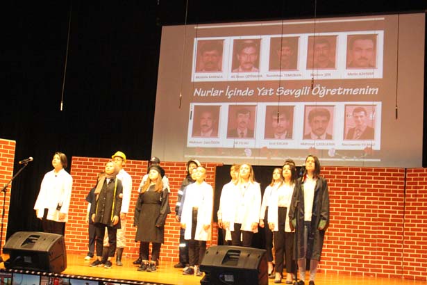 “Emektar” adlı şiirin okunması, “Öğretmenlere Sesleniş” adlı slayt gösterimi ve günün anlam ve önemine ilişkin “24 Kasım Öğretmenler Günü Oratoryosu”nda duygusal anlar yaşanırken, Şehit Öğretmenler Neşe Alten, Şenay Aybüke Yalçın’ı konu alan duygusal anlar yaşattılar.