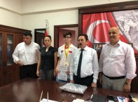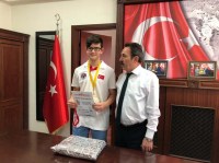Alaplı Kaymakamı Saim Eskioğlu, Avrupa Okullar Satranç Şampiyonasında 15 yaş genel kategorisinde Avrupa birincisi olan Alaplı İMKB Anadolu Lisesi öğrencisi Serhan Berat Özdemir makamında kabul etti.
