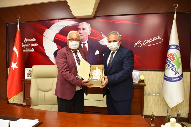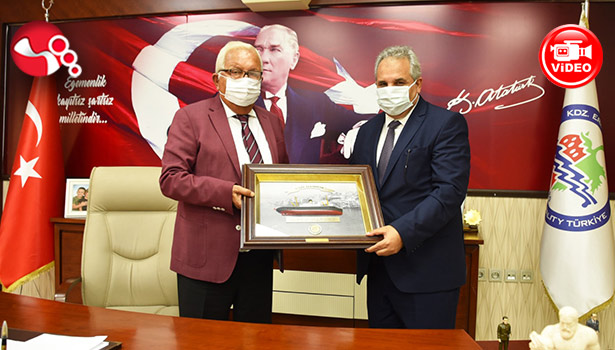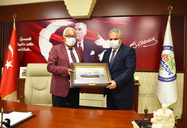 Ziyaretin sonunda Başkan Posbıyık, Yapıcı’ya Herkül heykeli, Alemdar Gemisi tablosu ve içerisinde çeşitli tanıtım broşürü ve kente özgü hediyelerin yer aldığı çantayı takdim etti.