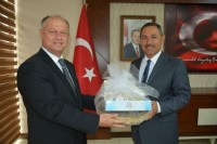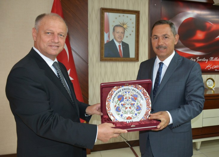 Zonguldak'Iın Ereğli İlçe Kaymakamı İsmail Çorumluoğlu, Karadeniz Ereğli Belediye Başkanı Hüseyin Uysal'ı ziyaret etti.
