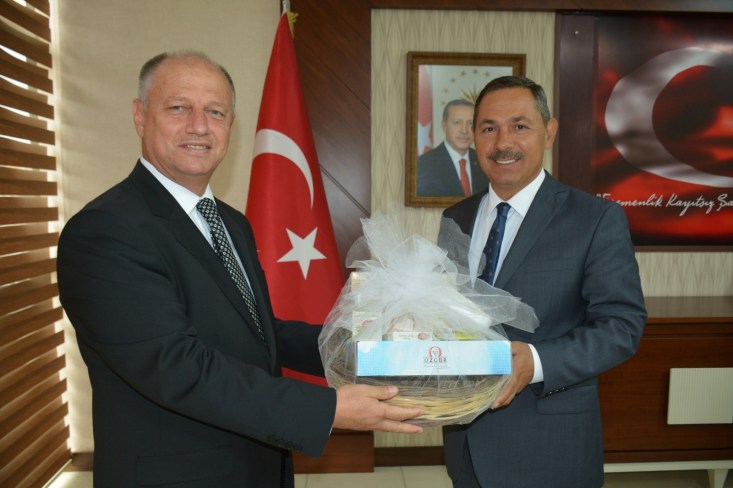 Hüseyin Uysal'ı makamında ziyaret etti. Kaymakam İsmail Çorumluoğlu hediyesini Hüseyin Uysal'a