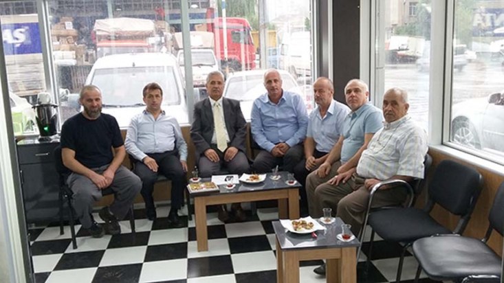 Madenoğlu, Kışla Sanayi Sitesi'nde faaliyet gösteren Titiz Oto Firması ofisinde esnafla bir araya geldi.