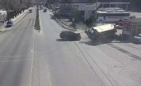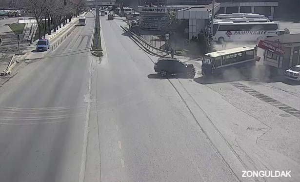 Zonguldak'ta geçen mart ayında ciple yolcu minibüsünün çarpıştığı kazanın güvenlik kameraları ortaya çıktı. Saniye saniye kaydedilen görüntülerde minibüsteki yolcular büyük bir faciadan kurtuldu.