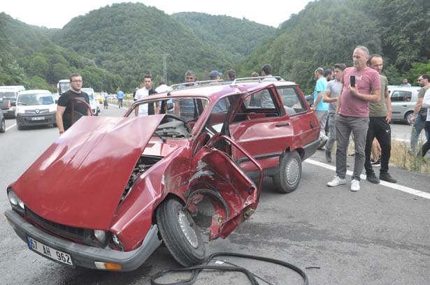 Edinilen bilgiye göre kaza, iki gün önce Zonguldak-Ankara karayolu hayvan barınağı mevkiinde meydana geldi. İddialara göre, Zonguldak’tan Ankara istikametine seyir halindeki Ali A. idaresindeki 67 AD 404 plakalı otomobil, benzinlikten çıkan Mehmet A. idaresindeki 67 AH 962 plakalı otomobile çarparak karşı şeride geçti. Kazada Mehmet A. ve eşi Nazife A. ile diğer araçta bulunan Ali A. ile yanında bulunan Birol A. ve Mehmet F. yaralandı. Yaralılar ihbar üzerine olay yerine gelen sağlık ekiplerinin ilk müdahalesinin ardından Zonguldak Atatürk Devlet Hastanesine kaldırıldılar. Nazife A.'nın hayati tehlikesinin olduğu öğrenildi.