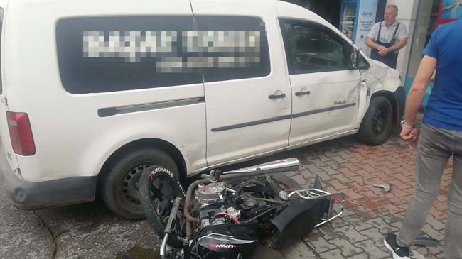 Çarpmanın etkisi ile devrilen motosiklette sürücü Muhammet O. ve motosiklette bulunan Emirhan Y. ağır yaralandı.