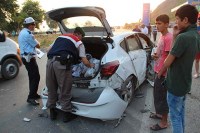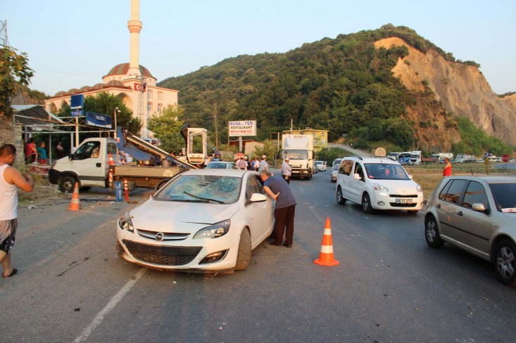 yerde sürekli kaza meydana gelmesi üzerine mahalle sakinleri otomobilden yaralı